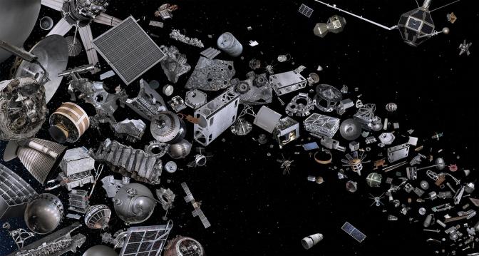 Space debris (aka Space Garbage) are damaged or decommissioned objects floating in space made up of fragments, parts or satellites.